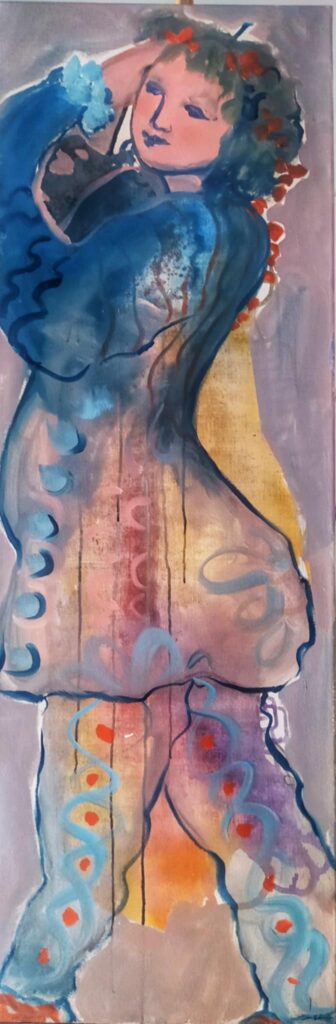 Ya mas mayorcita y después de estudiar en diversas escuelas y en distintas ciudades comienza mi verdadera actuación profesional y vital, pues hago mi primera exposición adulta en la Peña Flamenca de mi pueblo. El fracaso fue rotundo, los cuadros pintados en un estilo surrealista atrajeron la atención de mucha gente que además de no comprarlos, se espantaron, lo supe porque oí el comentario de dos señoras, le decía una a la otra: pobrecita su madre “¡esta niña está como una cabra!”